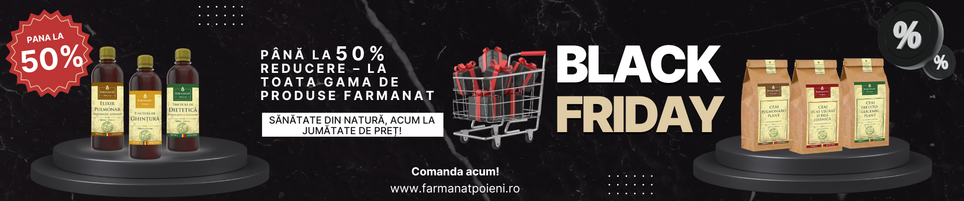 De Black Friday 2025, te așteaptă reduceri de până la 50% la toate produsele din site - de la siropuri și tincturi, până la tratamente naturiste pentru diabet, digestie, ficat, circulație, plămâni sau slăbit. Fiecare formulă reflectă pasiunea noastră pentru natură și dorința sinceră de a oferi soluții sigure, autentice și eficiente pentru sănătatea ta.