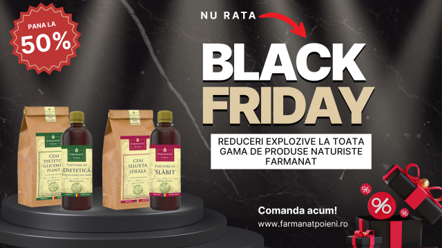 În această perioadă de oferte de Black Friday din România, transformă cumpărăturile într-o alegere conștientă - nu doar o vânătoare de prețuri. Fii atent ce și de unde cumperi, pentru că nu toate produsele naturiste oferă aceleași standarde de calitate și puritate. Alege Farmanatpoieni.ro - soluții naturale, aflate acum în promoțiile de Black Friday.